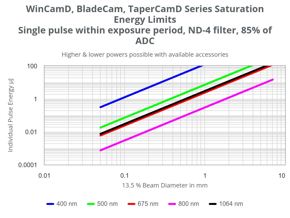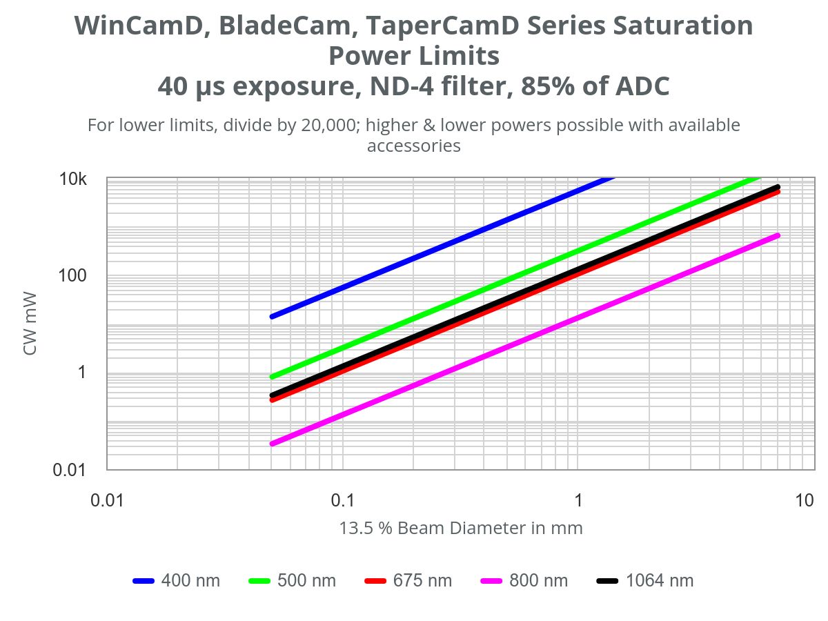 BladeCam2-HR/HR-ND4:355 至 1150 nm BladeCam2-HR-1310:355 至 1350 nm BladeCam2-HR-TEL:1480 至 1610 nm BladeCam2-HR-UV:190 至 1150 nm |