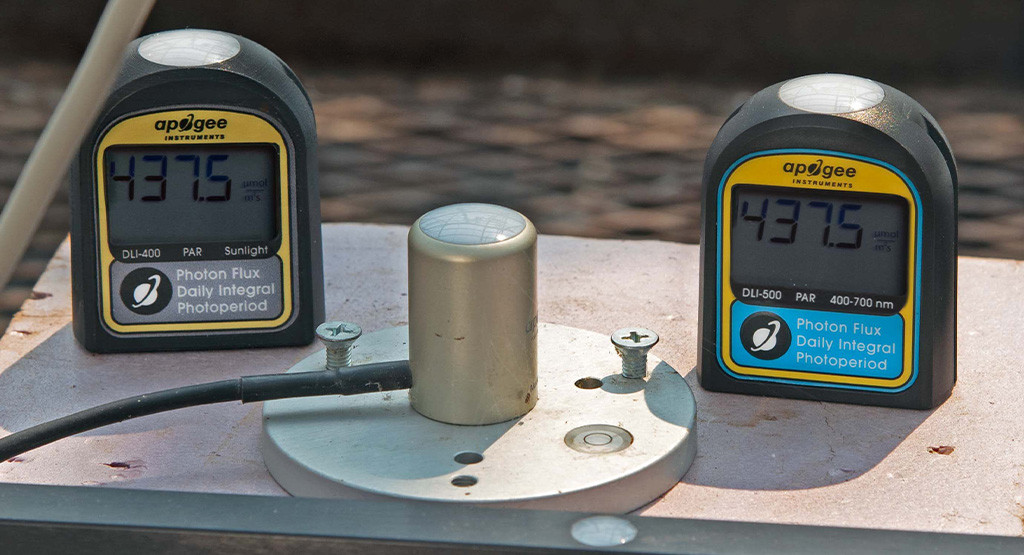 DLI-400 日光計(jì)是2022 年的新產(chǎn)品,用于抽查光合有效輻射(PAR;400–700 nm)水平并測量日光積分(DLI) 和光周期。DLI-400 是一種低成本選項(xiàng),僅在陽光和某些寬帶光源下準(zhǔn)確。PAR、DLI 和光周期影響植物的生長和發(fā)育,通常在溫室和生長室中測量它們以幫助進(jìn)行光照管理和決策。DLI是指24小時(shí)內(nèi)入射在一個(gè)平面上的PAR或擴(kuò)展PAR(ePAR)的總量,單位為每天每平方米的摩爾數(shù)。光周期是 24 小時(shí)內(nèi) PAR 或 ePAR 入射的總時(shí)間,以小時(shí) (h) 為單位表示。