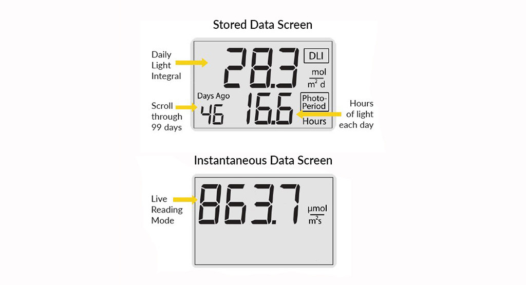 測量模式:這款堅(jiān)固、防水且緊湊的儀表非常適合 PPFD 或 ePPFD 的單次(抽查區(qū)域)或連續(xù)測量;DLI;和光周期。DLI-400 儀表有兩種不同的屏幕模式來顯示測量值:存儲(chǔ)數(shù)據(jù)和實(shí)時(shí)查看數(shù)據(jù)。在存儲(chǔ)的數(shù)據(jù)屏幕中,它顯示 DLI 測量、光周期和收集數(shù)據(jù)的日期(最多 99 天前)。實(shí)時(shí)視圖數(shù)據(jù)屏幕顯示最近 2.5 秒的 PPFD 運(yùn)行平均值。測量和控制 DLI 和植物接收的光照時(shí)間(光周期)對于優(yōu)化植物健康、觸發(fā)開花和誘導(dǎo)其他植物形態(tài)效應(yīng)至關(guān)重要。PPFD、DLI 和光周期數(shù)據(jù)可以在屏幕上查看或通過 USB-C 數(shù)據(jù)線下載以進(jìn)行分析。