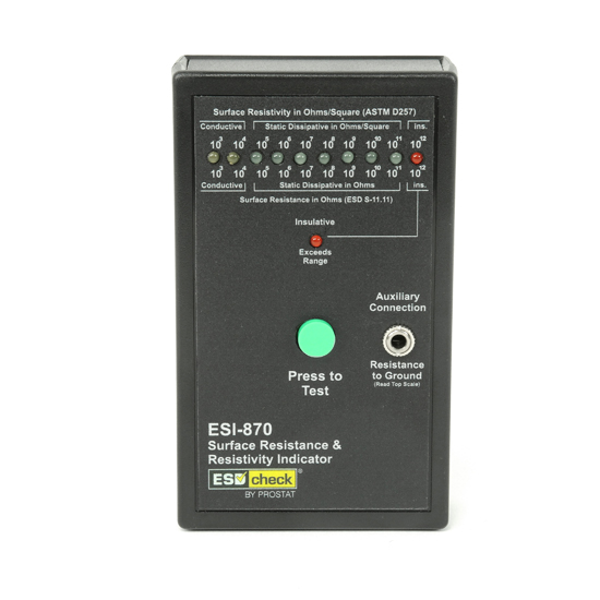 指示表面電阻 ESI-870 電阻/電阻率指示器是一種 LED 指示、寬范圍電阻測量儀器,具有廣泛的應(yīng)用靈活性。它根據(jù) ANSI/ESD STM11.11 測量表面電阻,根據(jù) ASTM D-257 測量表面電阻率、接地電阻和點對點電阻。