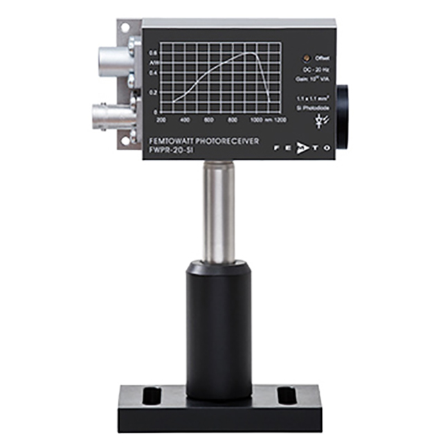 FWPR-20 系列光接收器將低噪聲 Si 或 InGaAs PIN 光電二極管與專門設(shè)計的跨阻放大器相結(jié)合,具有高達 1012 V/A的高增益和低噪聲。由于其 0.7 fW/√Hz 的極低 NEP,這種獨特的組合產(chǎn)生了具有飛瓦靈敏度的光接收器??梢灾苯訖z測低至約 50 fW 的光功率。結(jié)合可選的 FEMTO 鎖相放大器,甚至可以檢測亞飛瓦范圍內(nèi)的功率水平。