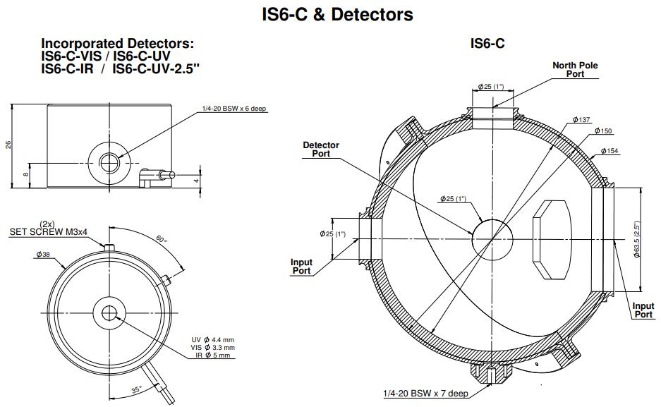 IS6-C-IR 是一個(gè) 6 英寸積分球(內(nèi)部 5.3 英寸),帶有用于準(zhǔn)直 (C) 光束的鍺檢測(cè)器。IS6-C-IR 配備紅外探測(cè)器,校準(zhǔn)范圍為 700 至 1800nm,可測(cè)量高達(dá) 30W 的功率。