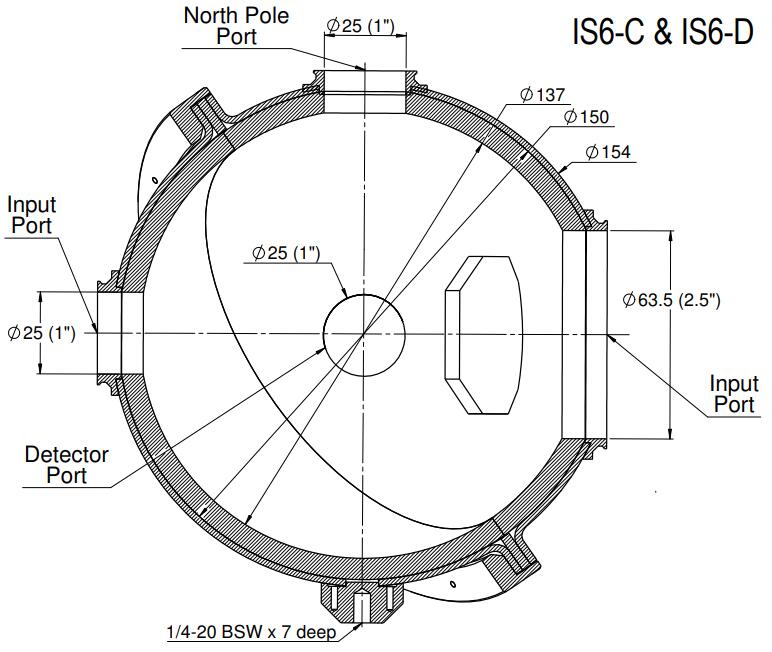 IS6-D 是一個(gè) 6” 積分球(內(nèi)部 5.3”),用于發(fā)散 (D) 光束。它沒有檢測器,IS6-D 的檢測配置由用戶完成。也可作為均勻光源使用。