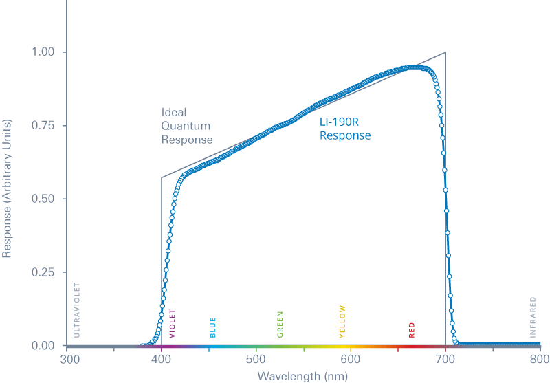 LI-190R響應(yīng)和以光子為單位的理想量子響應(yīng)