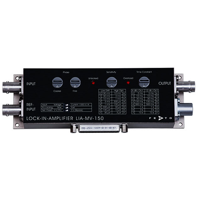 兩種編程方式放大器設(shè)置 - 例如相位、增益、時(shí)間常數(shù) - 由放大器模塊上的開關(guān)直接控制或使用標(biāo)準(zhǔn)數(shù)字 I/O 計(jì)算機(jī)板從外部控制。可變工作頻率由外部參考信號(hào)確定,該外部參考信號(hào)可以是例如斬波輪的同步信號(hào)或激光器的調(diào)制信號(hào)。電流輸入非常適合放大來自高阻抗源(如光電二極管或 PMT)的信號(hào),而電壓輸入可用于測量來自低阻抗源(如熱電阻或線圈)的信號(hào)。