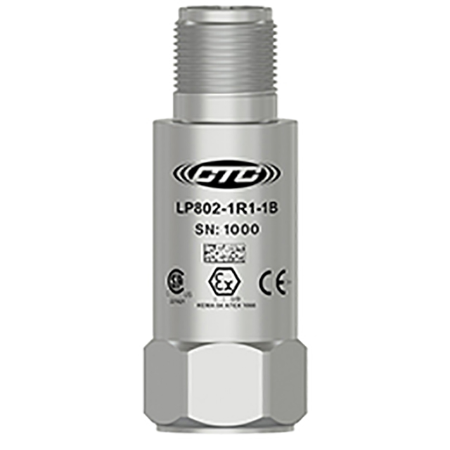 低電容,本質(zhì)安全回路功率傳感器,4-20毫安輸出與加速度中的振動(dòng)成比例,頂部出口帶飛線