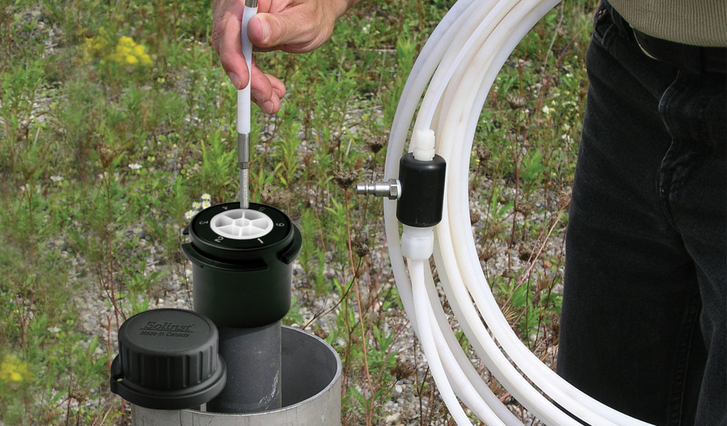 微型雙閥泵具有非常小和靈活的設(shè)計。它是一種氣動泵,使用同軸聚四氟乙烯管提供高質(zhì)量的樣品。直徑為3/8“(10 mm),足夠小,可以安裝在內(nèi)徑為1/2”(13 mm)的管道中,如Waterloo多級系統(tǒng)5/8“開口管,以及Solinst 403型CMT多級系統(tǒng)的通道中。非常適合狹窄應(yīng)用中的低流量地下水監(jiān)測。