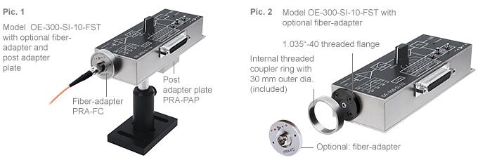 所有 OE-300 型號(hào)都可以通過(guò)可選的接桿支架適配器類(lèi)型 PRA-PAP 輕松安裝到標(biāo)準(zhǔn) M4 和 8-32 UNC 螺紋光學(xué)接桿支架上。