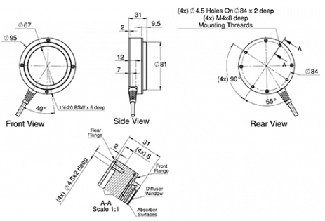 PE80BF-DIF-C是一種熱釋電能量計,帶有聚光束漫射器??讖綖?7mm,可以測量4mJ至40J的能量。它可在不超過250Hz的重復(fù)頻率下工作,覆蓋0.19-2.2,2.94μm的光譜范圍。探頭配有1.5米長的標(biāo)準電纜,用于連接儀表或PC適配器。