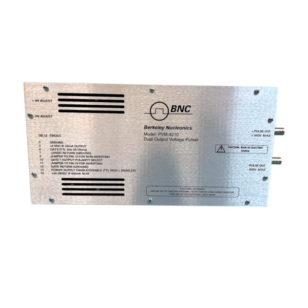 PVM-4210 脈沖發(fā)生器模塊提供兩個(gè)脈沖輸出通道,由通用控制邏輯控制。當(dāng)控制邏輯接收到門信號(hào)時(shí),兩個(gè)通道同時(shí)發(fā)出脈沖。一個(gè)通道從地脈沖到正高壓,另一個(gè)通道從地脈沖到負(fù)高壓。因此,每個(gè)輸出都可以連接到普克爾斯盒或 Q 開關(guān)的電極,或連接到一對(duì)偏轉(zhuǎn)板,從而在電池或板上提供 1,900 V 差分脈沖。