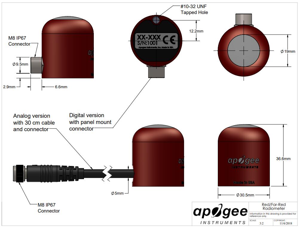 S2-131 紅色 - 遠(yuǎn)紅外傳感器是一款雙通道自供電傳感器。該傳感器采用堅(jiān)固的鋁制外殼,可完全浸入水中,可承受惡劣條件,并采用預(yù)鍍錫尾纖引線的高質(zhì)量電纜端接,可輕松連接到數(shù)據(jù)記錄器和控制器。傳感器電纜包括一個(gè) IP68 不銹鋼電纜連接器,以簡化從持久安裝中拆卸和更換傳感器以進(jìn)行維護(hù)和校準(zhǔn)的過程。典型應(yīng)用包括測量生態(tài)應(yīng)用的紅光/遠(yuǎn)紅光比 (RFR),包括光譜質(zhì)量對光敏色素的影響。RF 比率會影響植物高度、葉片展開率以及其他光生物學(xué)和植物形態(tài)發(fā)生反應(yīng)。