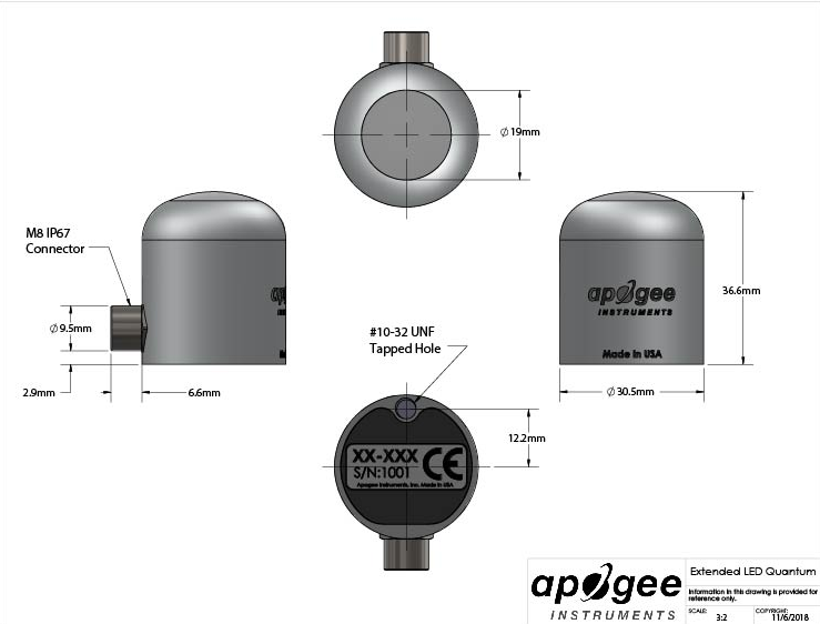SQ-642量子光污染是一種0到2.5 V輸出的放大傳感器。該傳感器采用堅固的鋁制外殼,可完全潛水,可承受惡劣條件,高質(zhì)量的電纜終端采用預(yù)鍍錫的pigtail引線,方便連接數(shù)據(jù)記錄儀和控制器。傳感器電纜包括一個IP68防水的不銹鋼電纜連接器,以簡化傳感器的拆卸和更換,從持久安裝進行維護和校準。量子光污染傳感器的典型應(yīng)用包括在室內(nèi)溫室或生長室的植物冠層上的傳入PFD測量,以及在相同環(huán)境中反射或冠層下(傳輸)PFD測量。