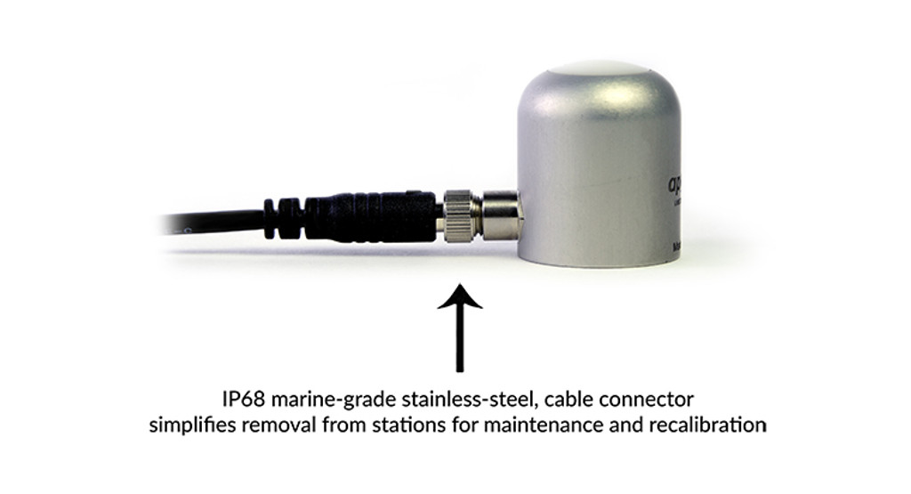 該傳感器的模擬版本 (SQ-640) 帶有內(nèi)聯(lián)電纜連接器,距離傳感器頭 30 厘米,可作為長(zhǎng)電纜尾纖傳感器標(biāo)準(zhǔn)使用,或通過(guò)擰下連接器與我們的 microCache 藍(lán)牙微型記錄器一起使用,丟棄較長(zhǎng)的電纜,然后將傳感器擰到 microCache 上的配合連接器上。