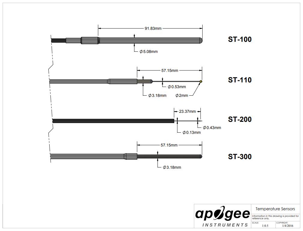 ST-100 是一款高精度熱敏電阻(0 至 70 C 范圍內(nèi)為 ± 0.1 C),安裝在防水外殼中,專為連續(xù)測量空氣、土壤或水而設(shè)計。