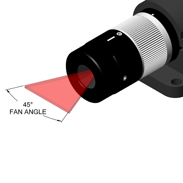 激光束形狀是具有 45° 扇形角的 Tophat Uniform 線