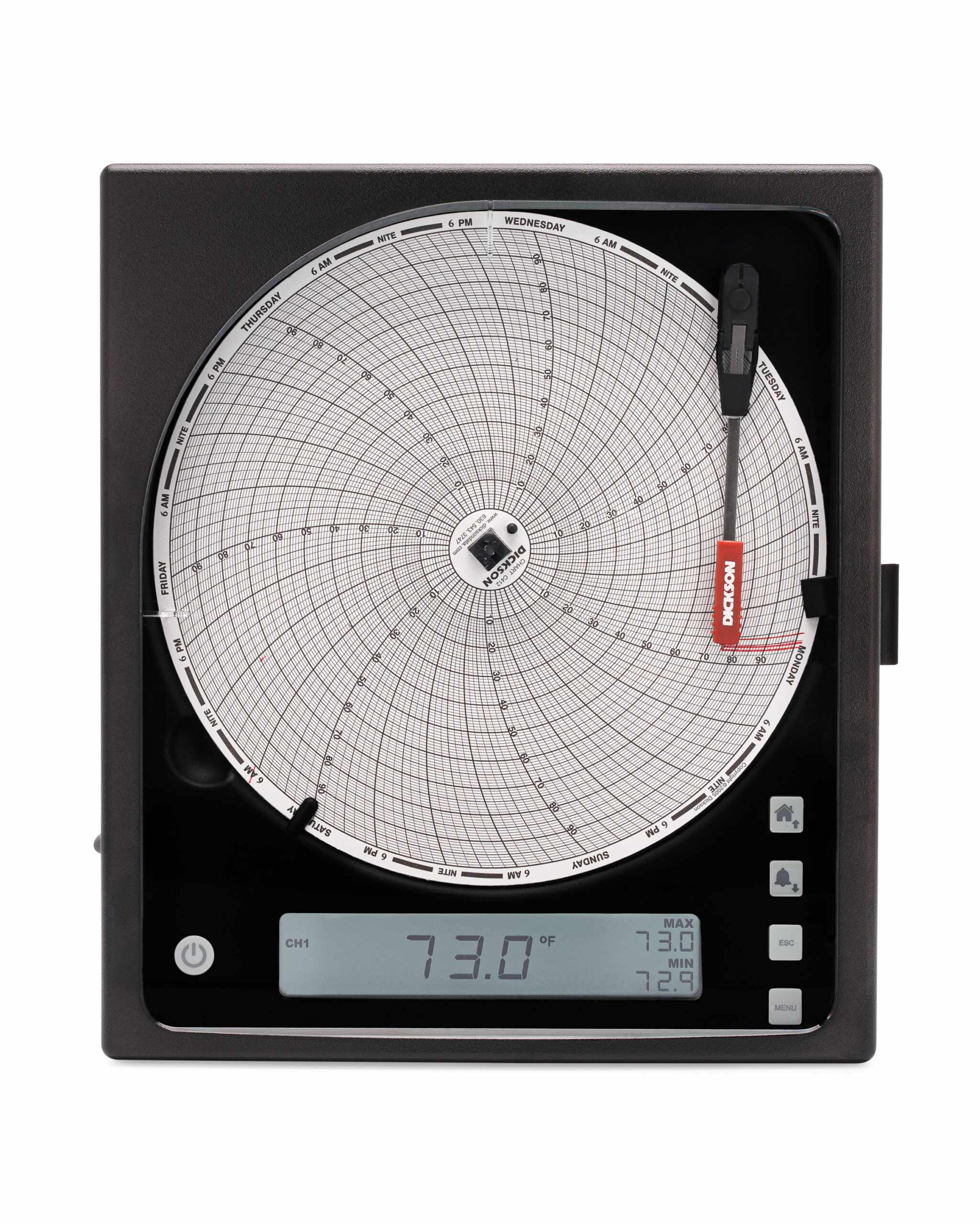 美國DICKSON TH8-10 8英寸(203 毫米)圖表記錄儀提供所有圖表記錄儀中較大的分辨率?,F(xiàn)在具有可更換傳感器,校準您的圖表記錄儀比以往任何時候都更容易。所有圖表記錄儀均配有 8 英寸大圖表和用戶可選擇的記錄時間范圍(1 天、1 周)和范圍。