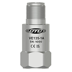 壓電速度傳感器,頂部出口2針連接器,100 MV/IN/SEC,±10%