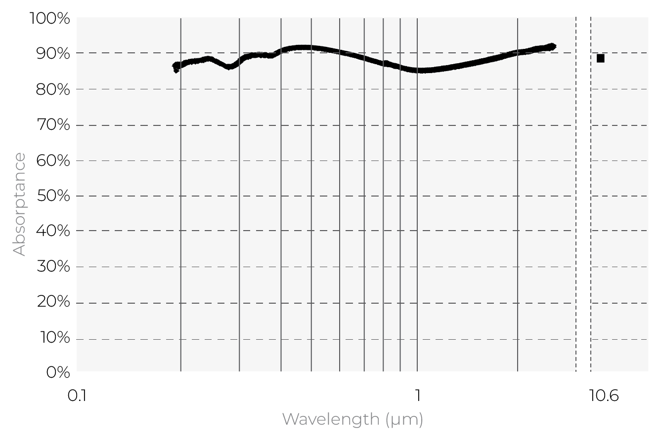 我們的 H 型吸收器具有寬帶和光譜平坦的光譜響應(yīng),因此該功率檢測器是一種多功能解決方案,可滿足大多數(shù)激光功率測量需求。我們專有的制造方法還使這種吸收器在平均功率密度和能量密度方面具有良好的損壞閾值。它的吸收能力很強,因此產(chǎn)生的背部反射比例相對較低。