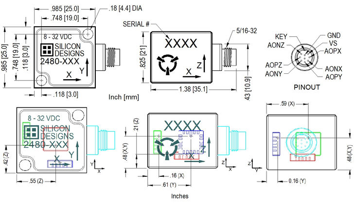 The SDI Models 2240 and 2480 contain a single or three orthogonally mounted, proprietary SDI Model 1522 accelerometer LCC chips, making them even less sensitive to temperature changes and gradients from -55 to +125°C and greatly reducing bias and scale factor temperature shifts for premium performance. Each temperature compensated, premium accelerometer LCC is individually tested, calibrated and verified in a climate chamber.
