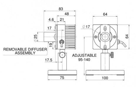 The 30(150)A-HE-DIF-17 is thermal power/energy laser measurement sensor with diffuser with a high damage threshold for concentrated beam lasers. It has a 17mm aperture and can measure from 50mW to 30W continuously and to 150W intermittently. It can measure energy from 60mJ to 200J. Its HE absorber with diffuser has a damage threshold of up to 5J/cm2 and with some gaps covers the spectral range from 0.19 to 2.94μm. The sensor comes with a standard 1.5 meter cable for connecting to a meter or PC interface.
