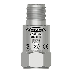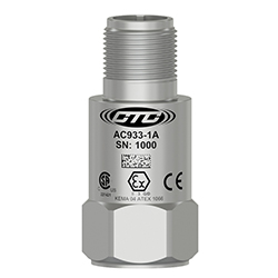 Low Capacitance, Class I, Division 2 / Zone 2 Accelerometer, Top Exit 2 Pin Connector, 100 mV/g, ±10%