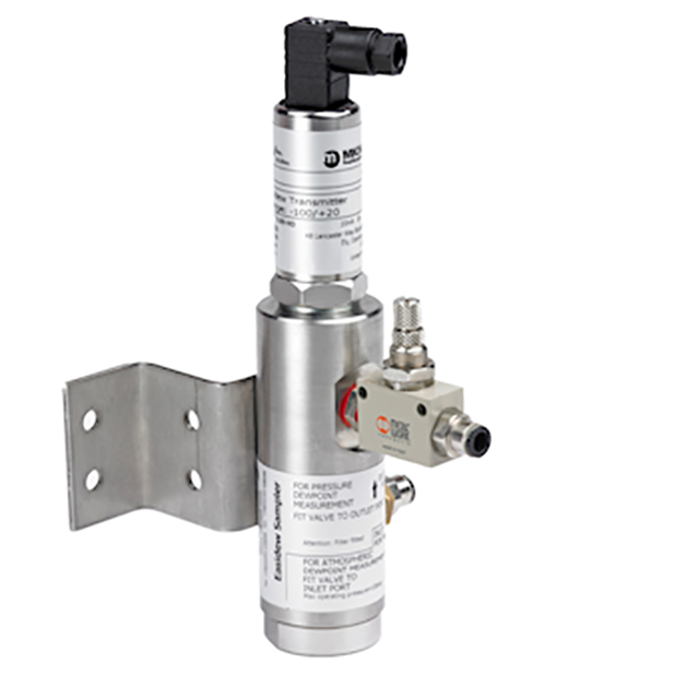 A low-cost, self-contained sampling system, with filtration and flow control, for measurement of either pressure or atmospheric dew points.