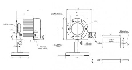 The BeamTrack series FL250A-BB-50-PPS laser measurement sensor measures laser beam size and position well as power and energy. It has a 50mm aperture and can measure beam size to 5% accuracy and position to 0.2mm accuracy. It measures power from 150mW to 250W and energy from 80mJ to 300J. It has the spectrally flat broadband coating and covers the spectral range from 0.19 to 20μm.The sensor comes with a 1.5m cable that connects it to the electronic box, and another 0.5m cable that connects the box to a Meter or PC interface.