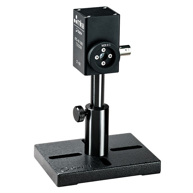 The FPD-UV-3000 is a fast optical detector for visualizing and measuring the temporal characteristics of laser beams in the spectral range from 193 nm to 1100 nm. It has a UV enhanced silicon PIN photodiode and is designed to convert optical signals into electrical signals which are then measured with third party measurement instrumentation such as oscilloscopes or spectrum analyzers for measurement. The FPD-UV-3000 has a rise time of 3 nsec. Its reverse bias voltage is provided by an external DC power supply (included).