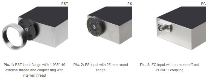 The FST free-space input can be converted into fiber connections (FC, FSMA) easily by simply screwing on the fiber adapter of the PRA series.